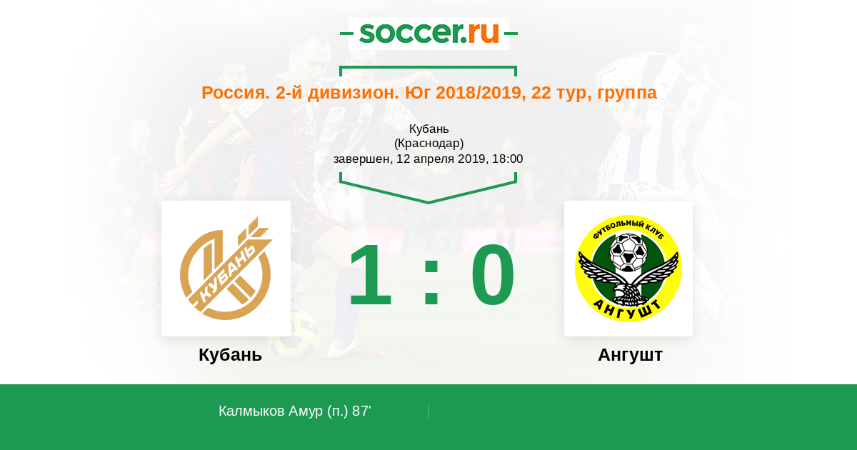 Протокол матча Урожай против Ангушт