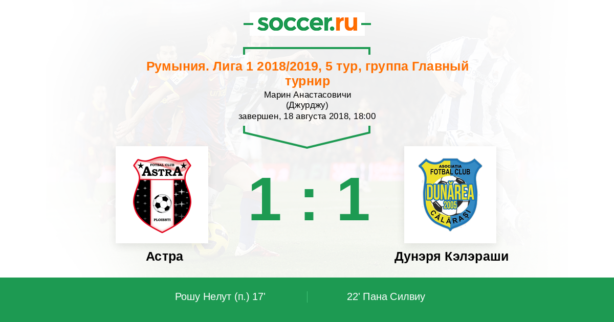 Протокол матча Астра против Дунэря Кэлэраши