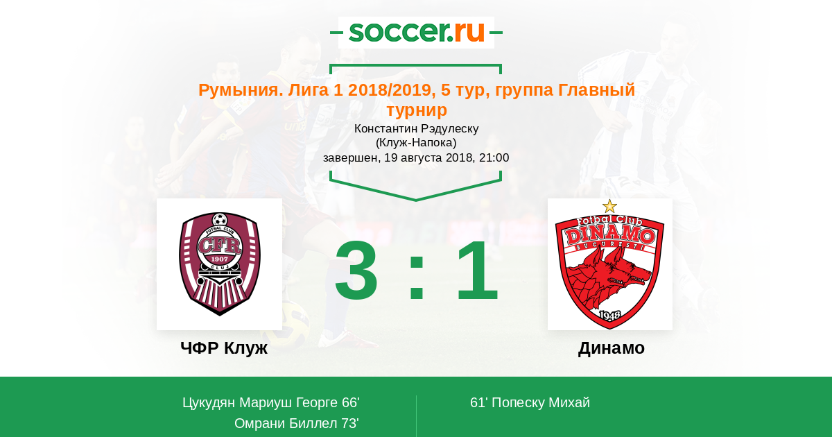 Протокол матча ЧФР Клуж против Динамо