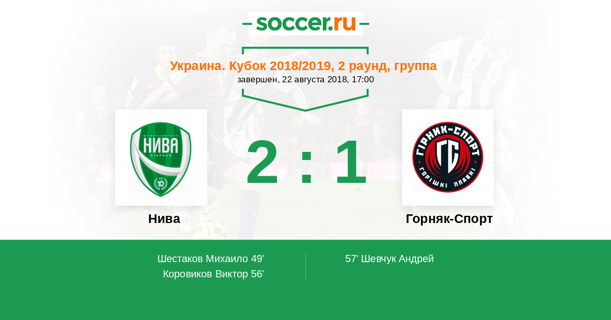 Протокол матча Нива против Горняк-Спорт