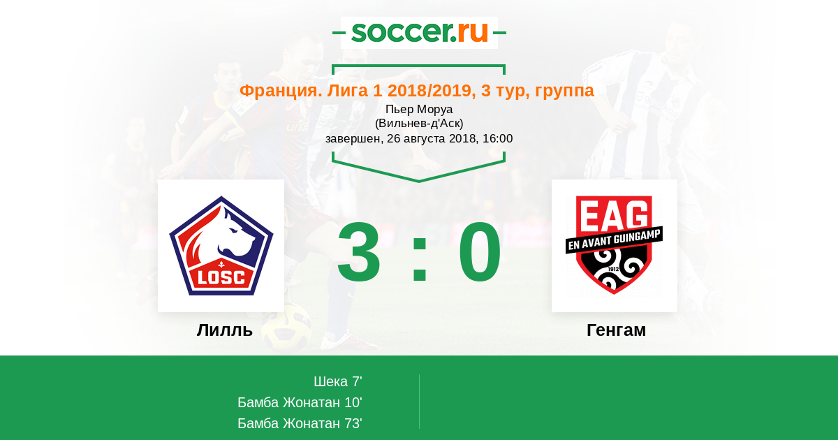 Протокол матча Лилль против Генгам