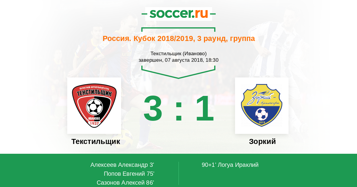 Протокол матча Текстильщик против Зоркий