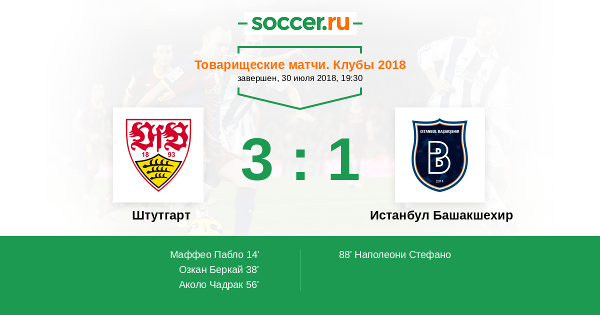 Протокол матча Штутгарт против Истанбул Башакшехир