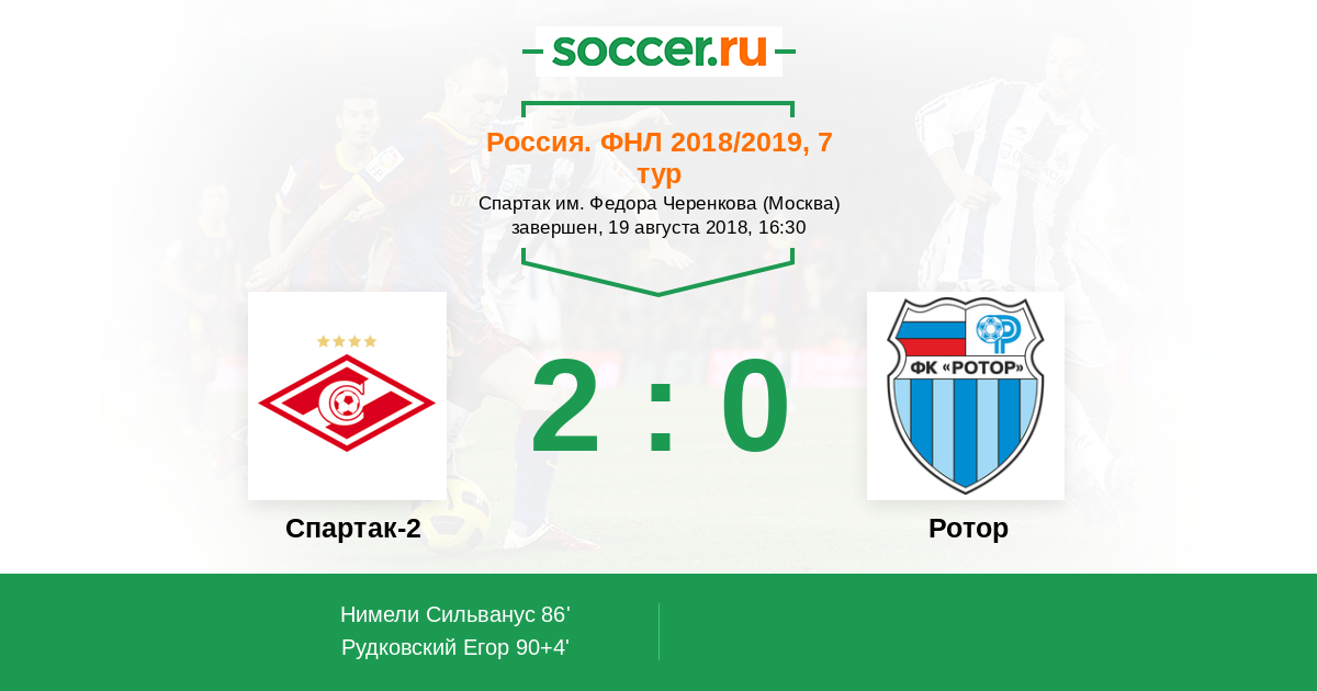 Протокол матча Спартак-2 против Ротор