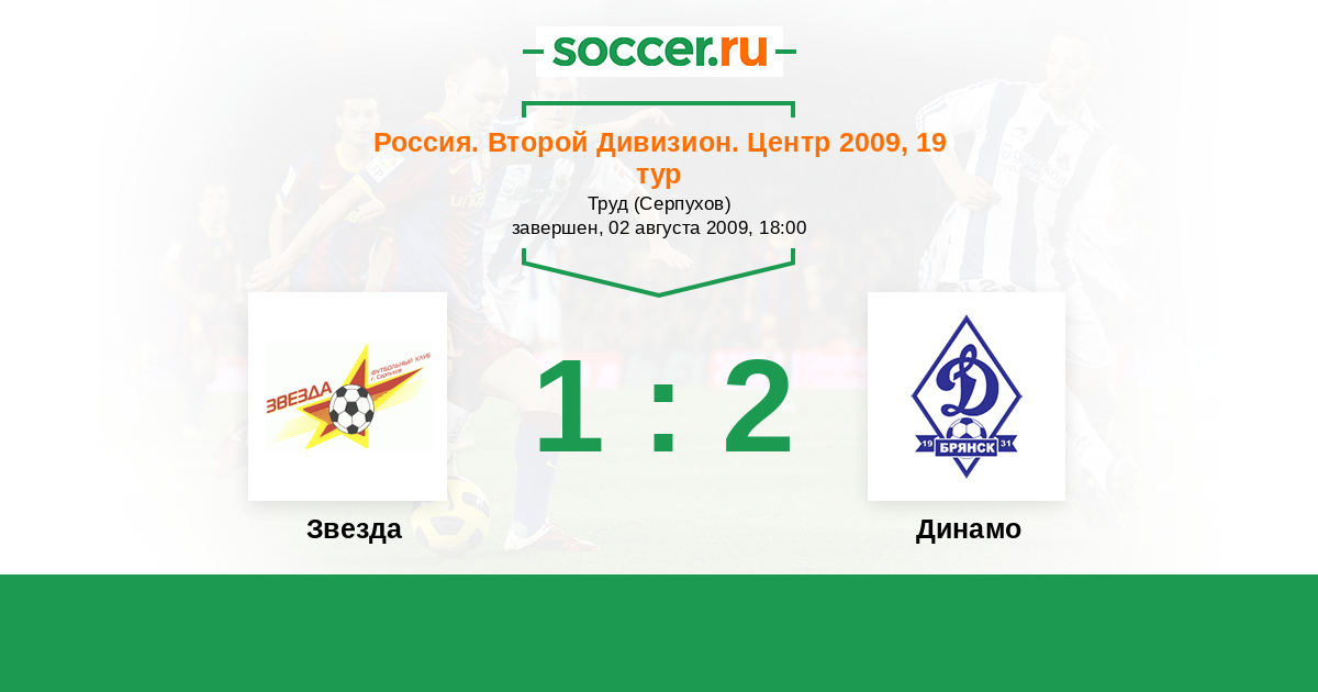Россия. Вторая лига. Группа 3 04.05.2009 Динамо Брянск Логотип футбольный клуб Динамо Брянск 0:2 Логотип футбольный клуб Звезда (Серпухов) Звезда