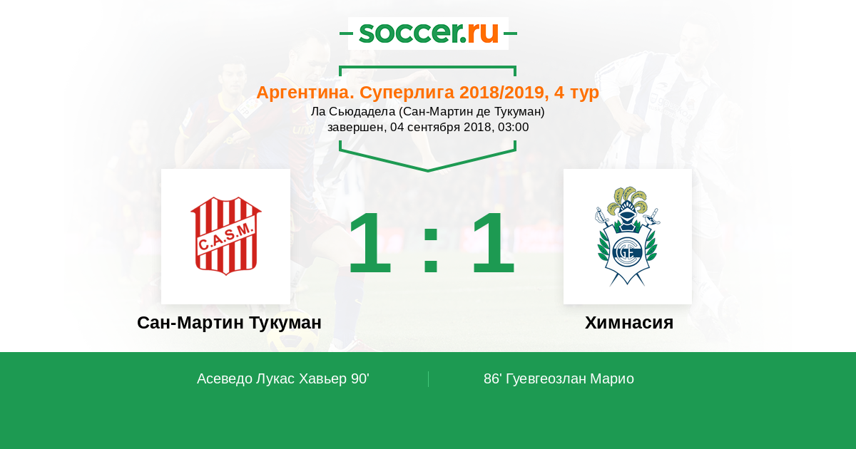 Протокол матча Сан-Мартин Тукуман против Химнасия