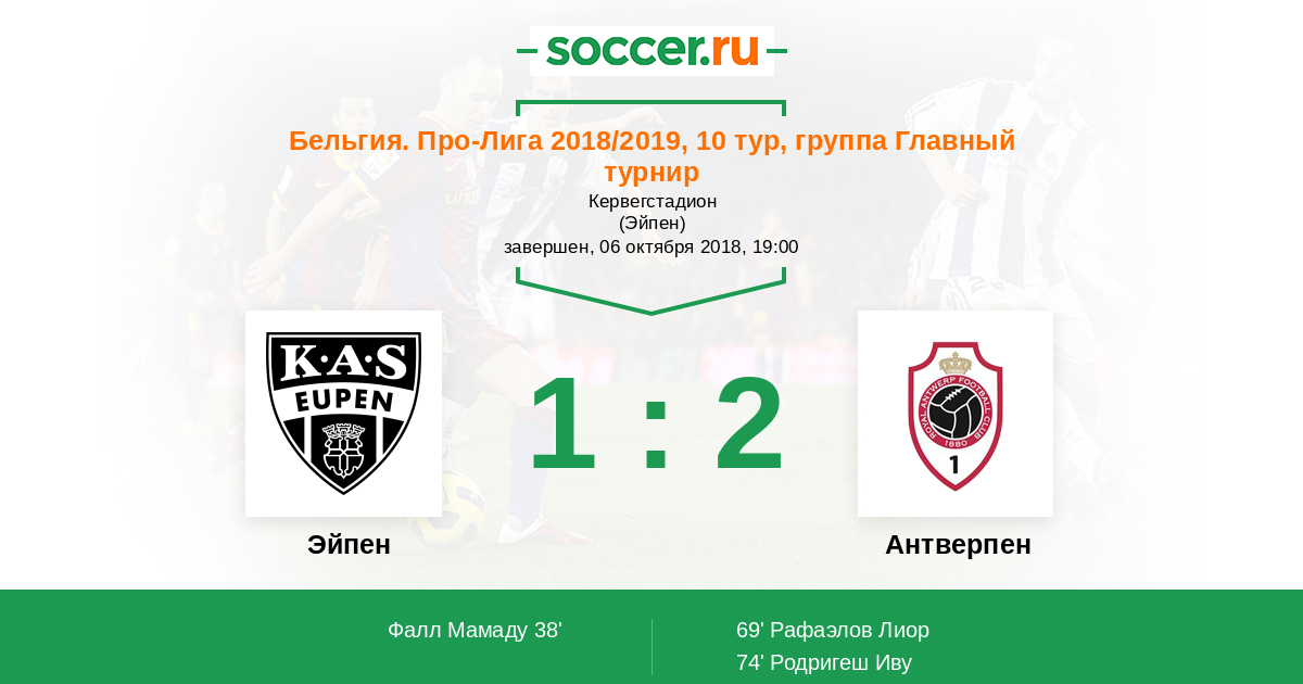 Протокол матча Эйпен против Антверпен