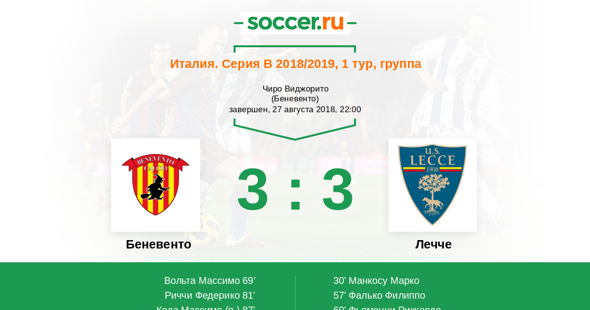 69' (1:3) Вольта Массимо (14) (Виола Николас (10))