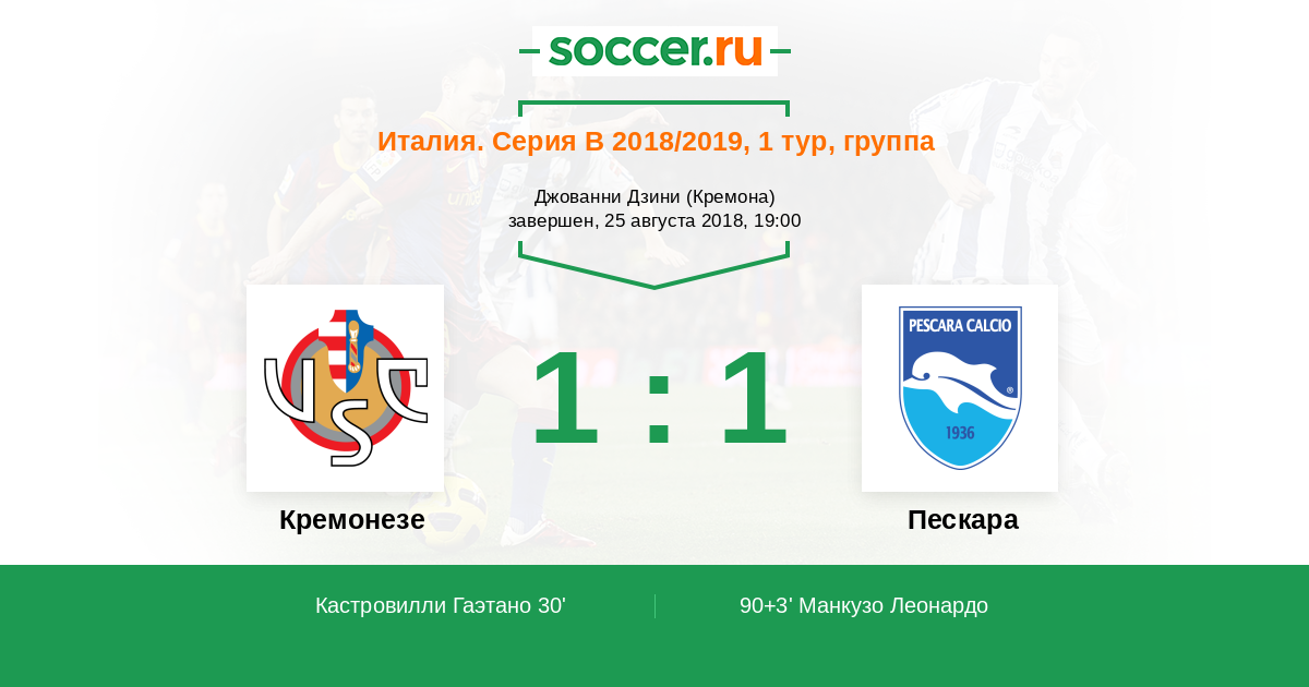 30' (1:0) Кастровилли Гаэтано (8) (Карретта Мирко (30))