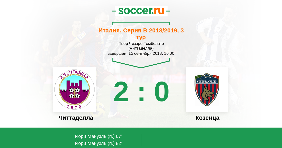 Протокол матча Читтаделла против Козенца