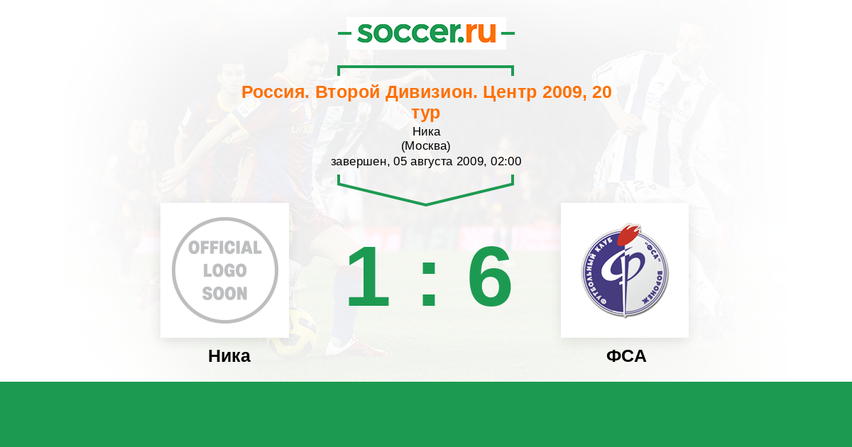 Россия. Вторая лига. Группа 3 07.05.2009 ФСА Логотип футбольный клуб ФСА (Воронеж) 3:0 Логотип футбольный клуб Ника (Москва) Ника