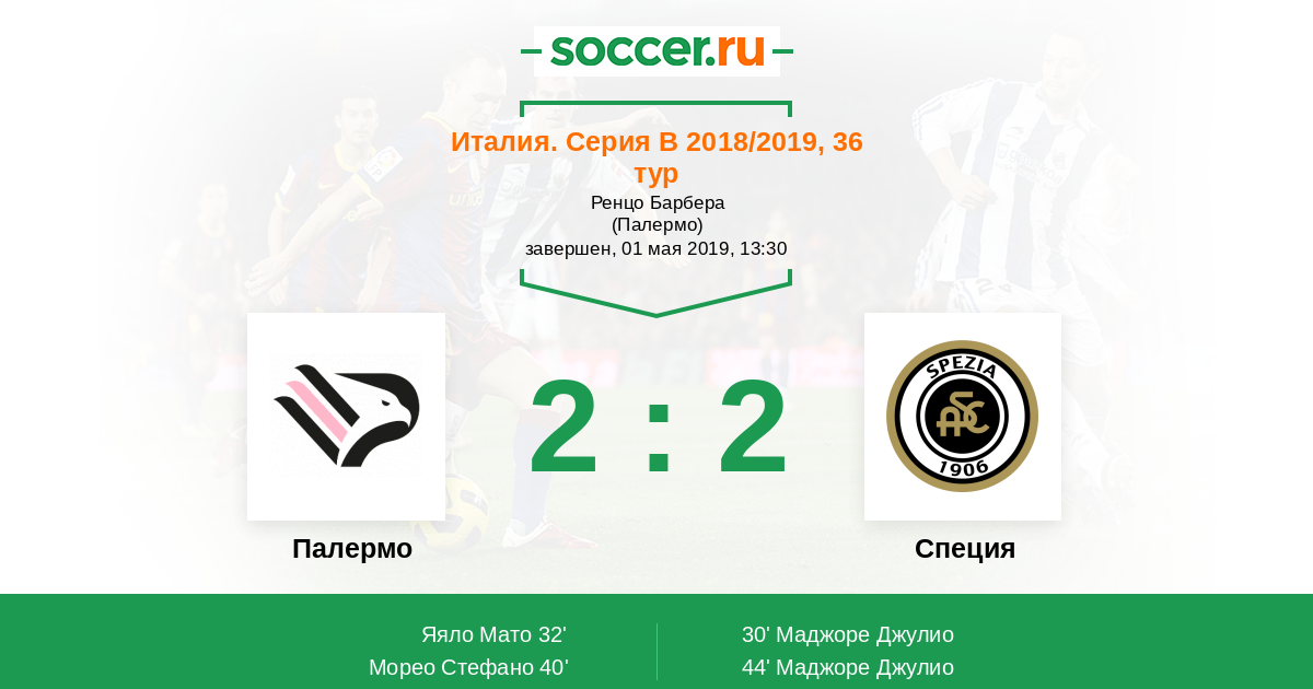 Протокол матча Палермо против Специя
