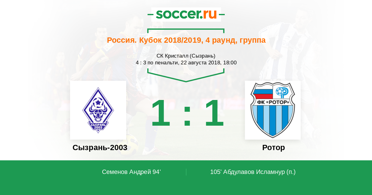 Протокол матча Сызрань-2003 против Ротор