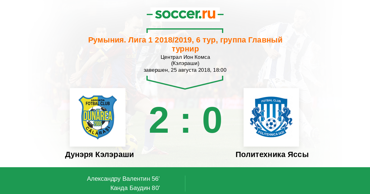 56' (1:0) Александру Валентин (19) (Испас Денис (44))