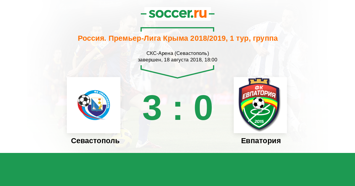 Россия. Премьер-Лига Крыма 02.06.2018 Севастополь Логотип футбольный клуб Севастополь 1:5 Логотип футбольный клуб Евпатория Евпатория