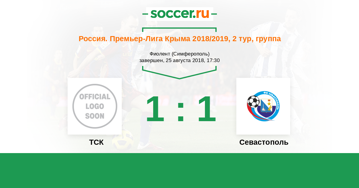 Россия. Премьер-Лига Крыма 14.10.2018 Севастополь Логотип футбольный клуб Севастополь 1:3 Логотип футбольный клуб ТСК (Симферополь) ТСК