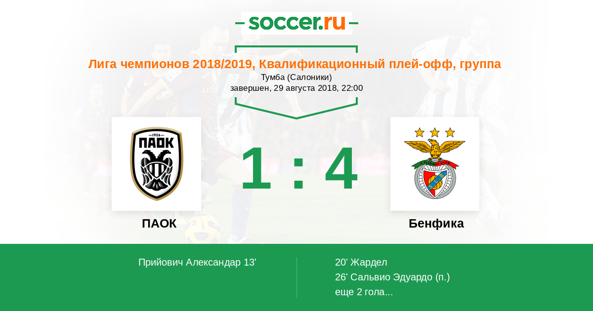 Протокол матча ПАОК против Бенфика