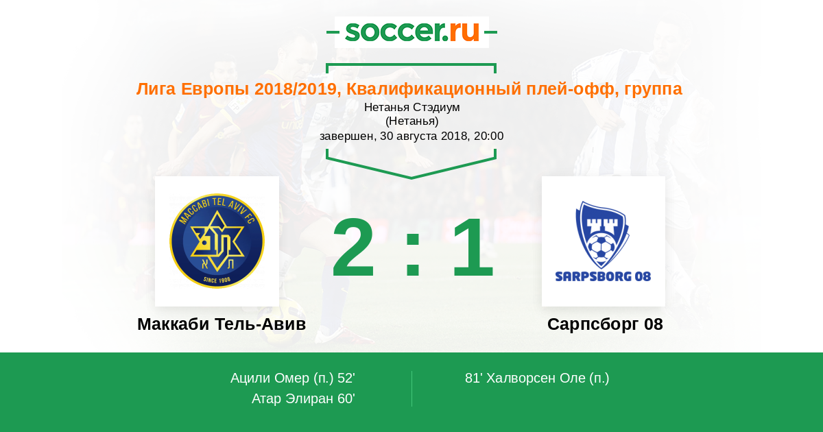 Протокол матча Маккаби Тель-Авив против Сарпсборг 08