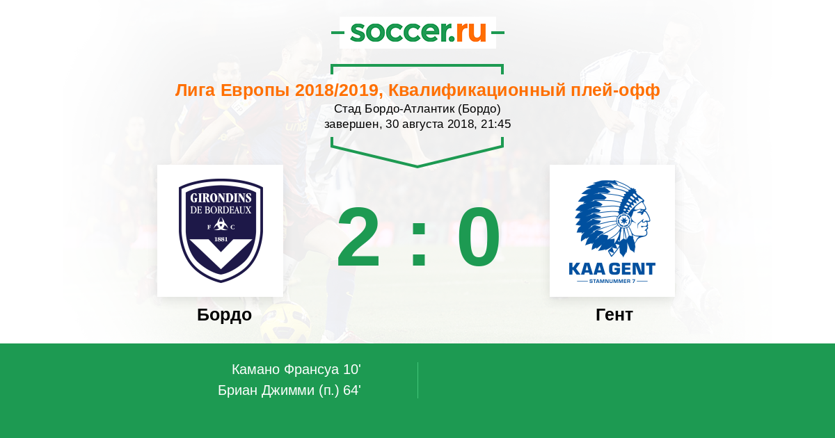 Протокол матча Бордо против Гент