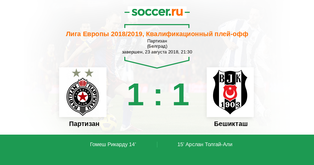 Протокол матча Партизан против Бешикташ