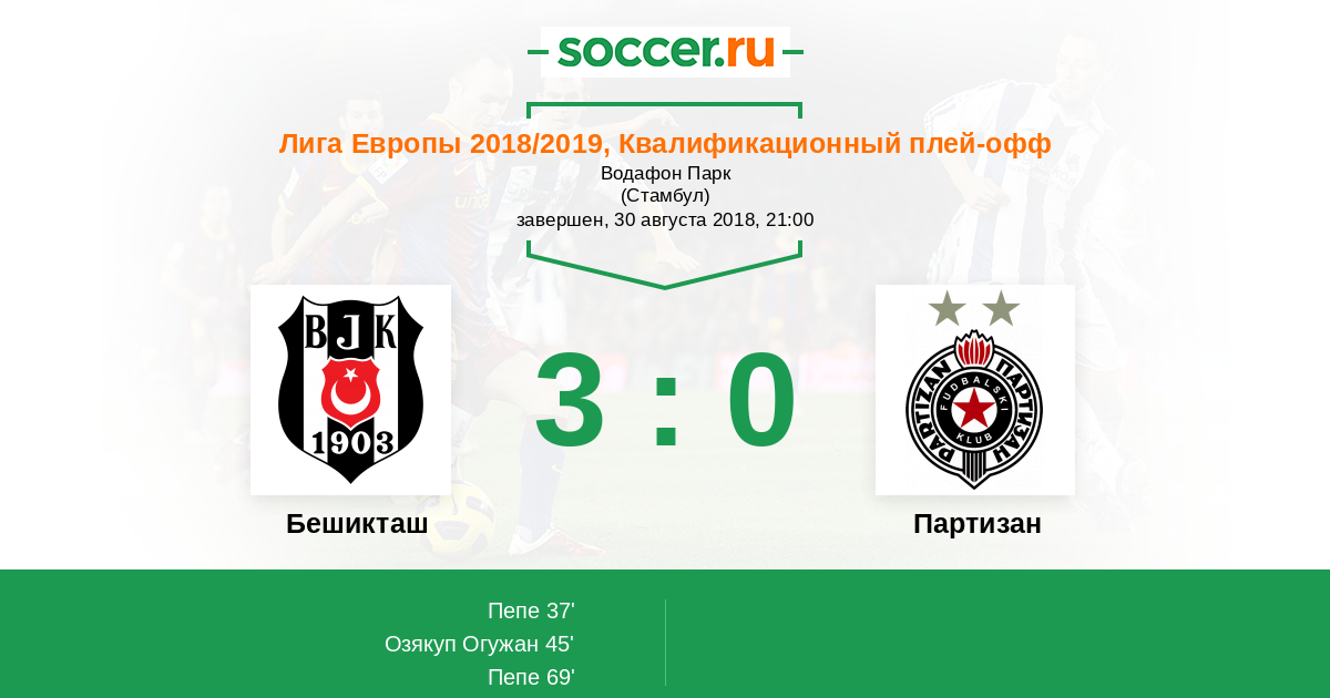 Протокол матча Бешикташ против Партизан