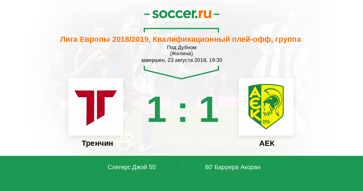 Протокол матча Тренчин против АЕК