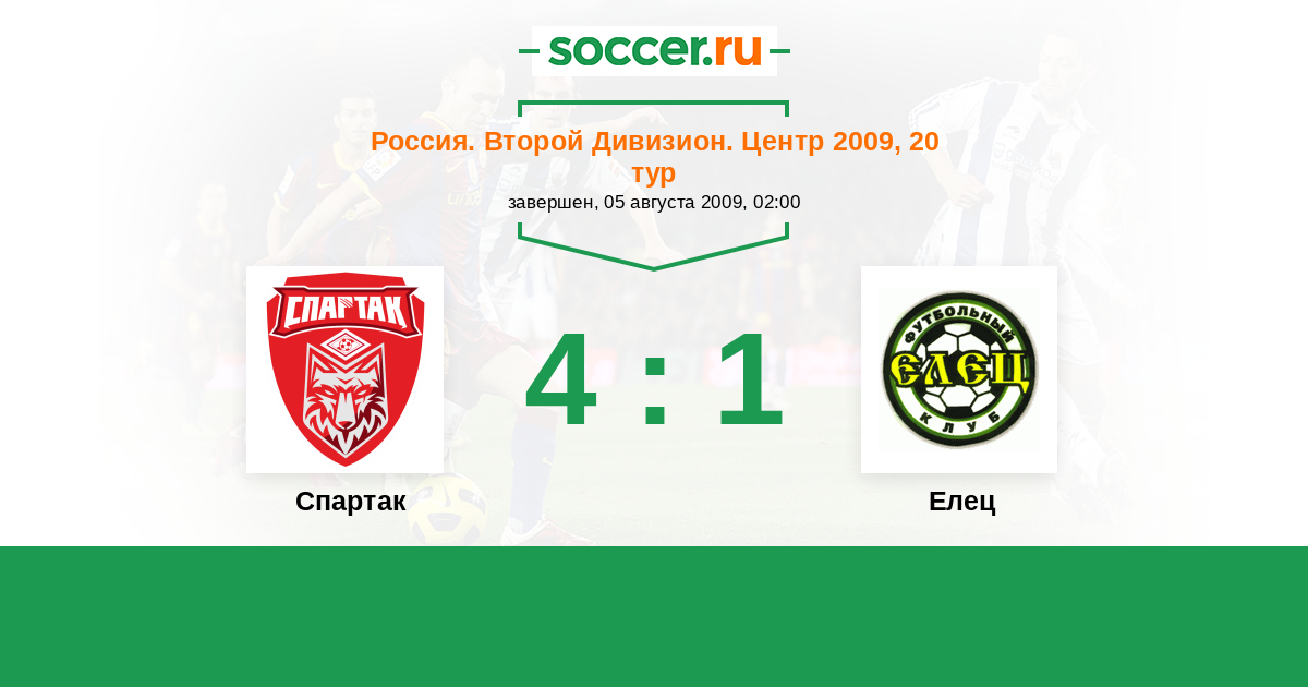 Россия. Вторая лига. Группа 3 07.05.2009 Елец Логотип футбольный клуб Елец 1:1 Логотип футбольный клуб Спартак (Тамбов) Спартак
