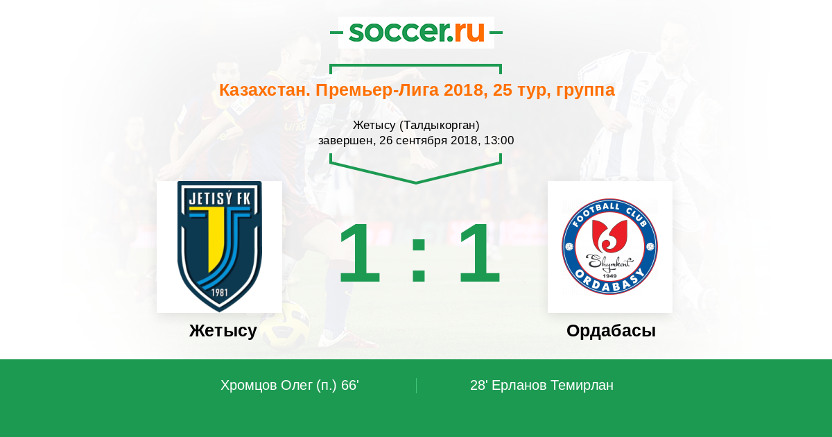 Протокол матча Жетысу против Ордабасы
