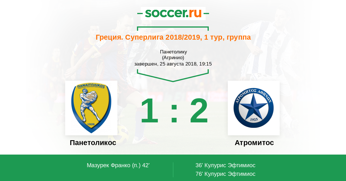 76' (1:2) Кулурис Эфтимиос (20) (Яннулис Димитрис (31))