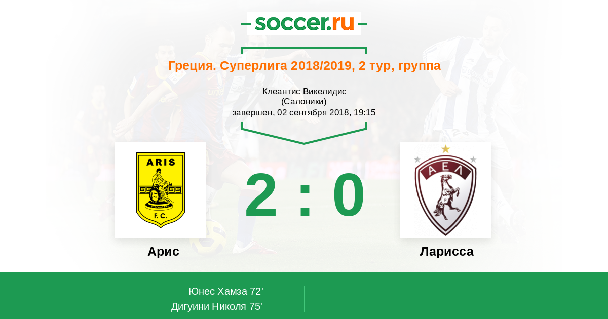 Протокол матча Арис против Ларисса