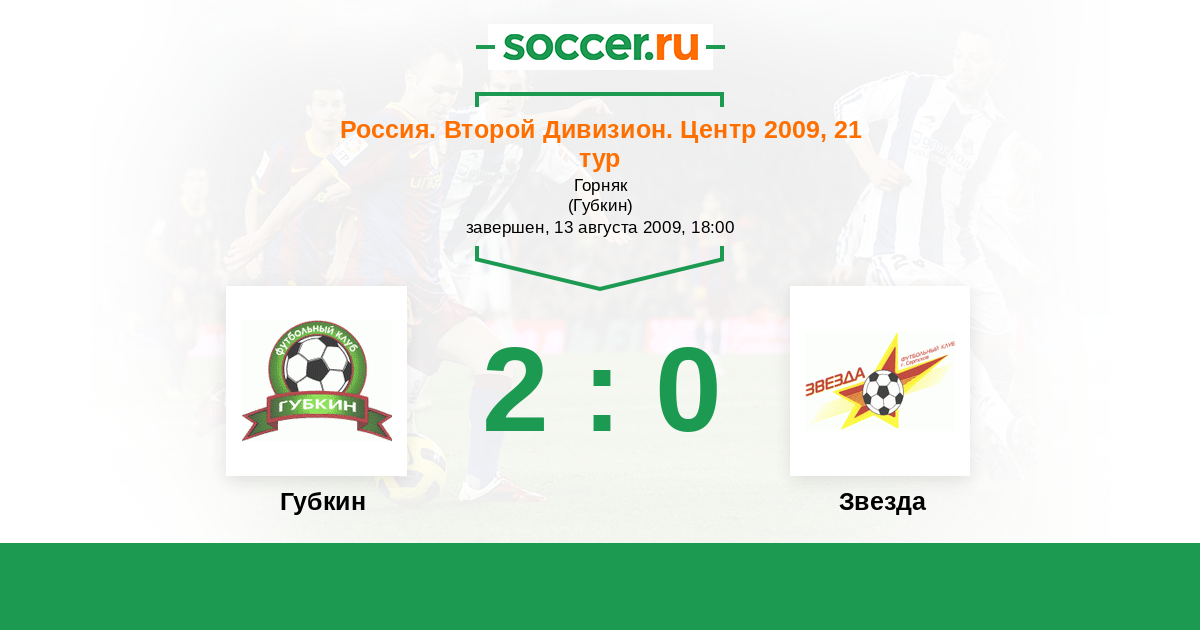 Россия. Вторая лига. Группа 3 18.10.2009 Звезда Логотип футбольный клуб Звезда (Серпухов) 0:1 Логотип футбольный клуб Металлург-Оскол (Старый Оскол) Металлург-Оскол