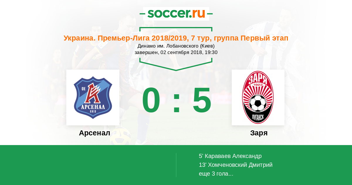 Протокол матча Арсенал против Заря