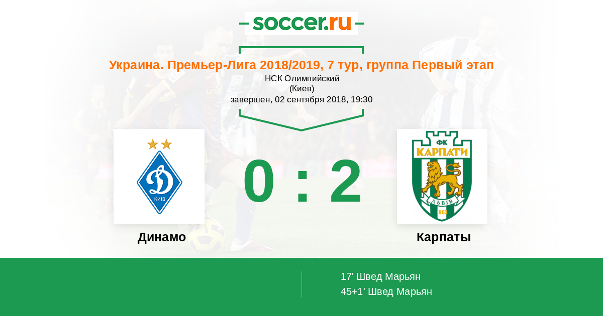 Протокол матча Динамо против Карпаты