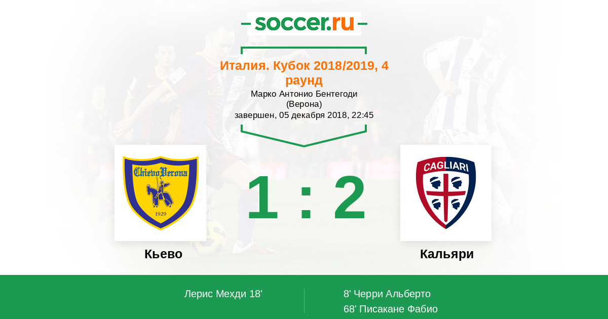 Протокол матча Кьево против Кальяри