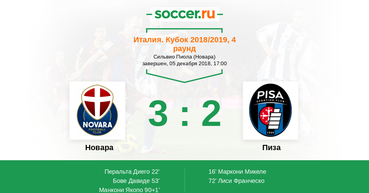 Протокол матча Новара против Пиза