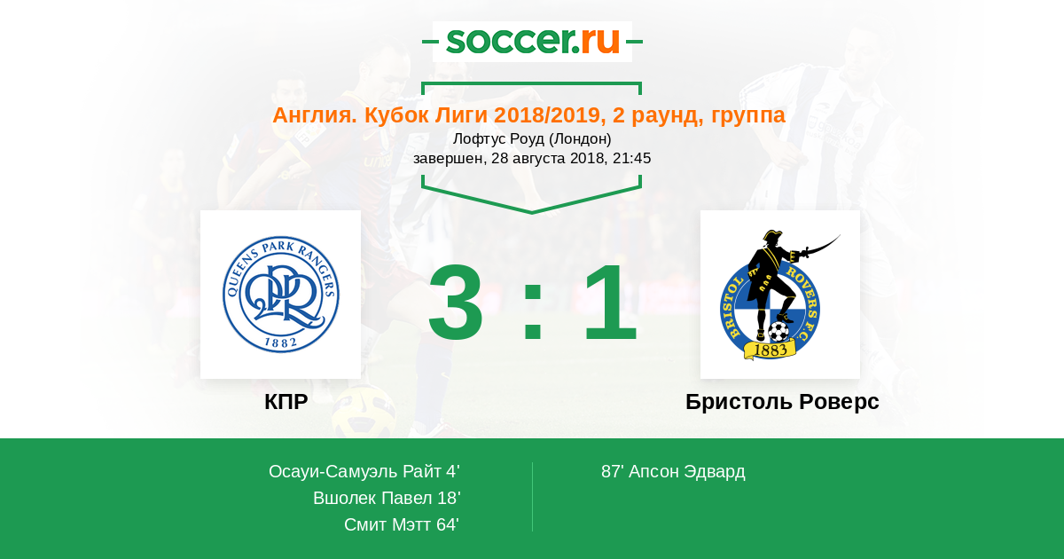 Протокол матча КПР против Бристоль Роверс