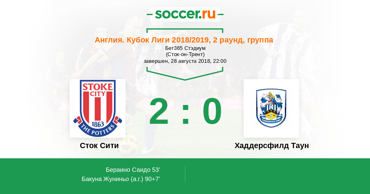Протокол матча Сток Сити против Хаддерсфилд Таун