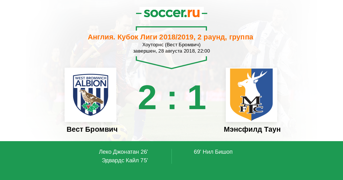 Протокол матча Вест Бромвич против Мэнсфилд Таун