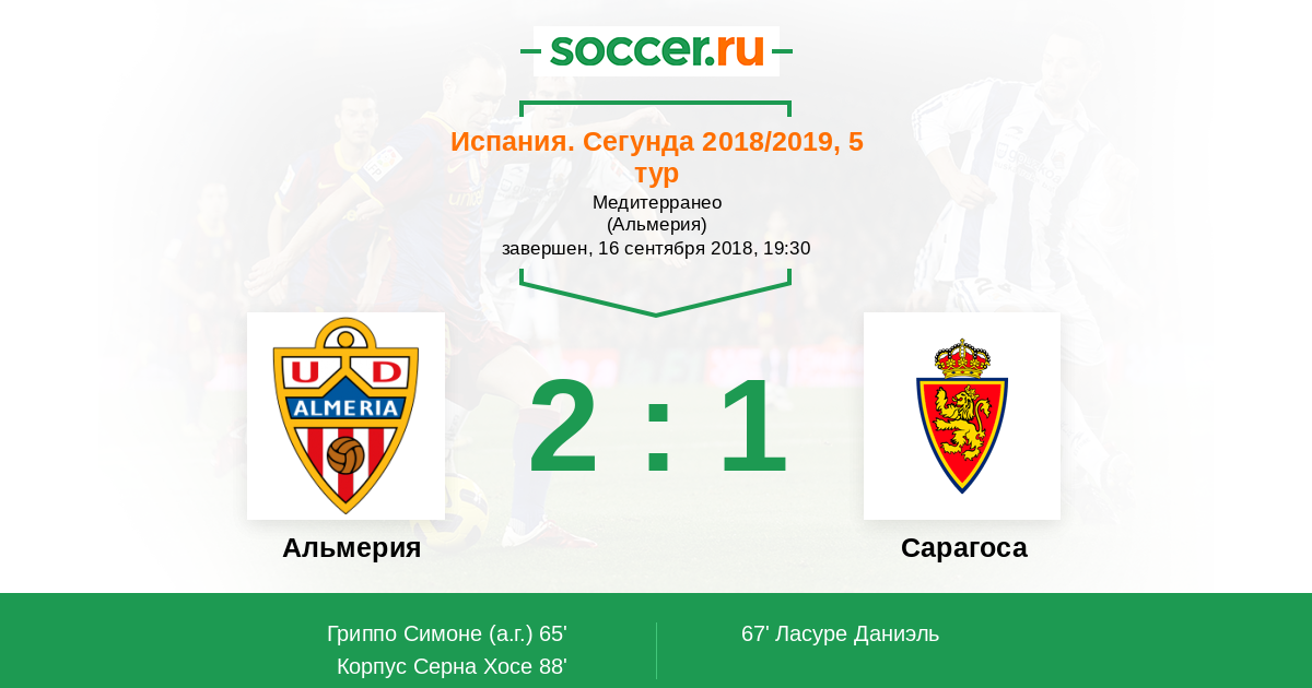 Протокол матча Альмерия против Сарагоса