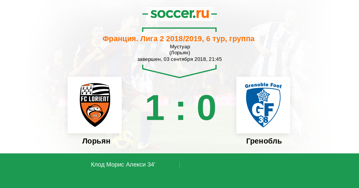 Протокол матча Лорьян против Гренобль