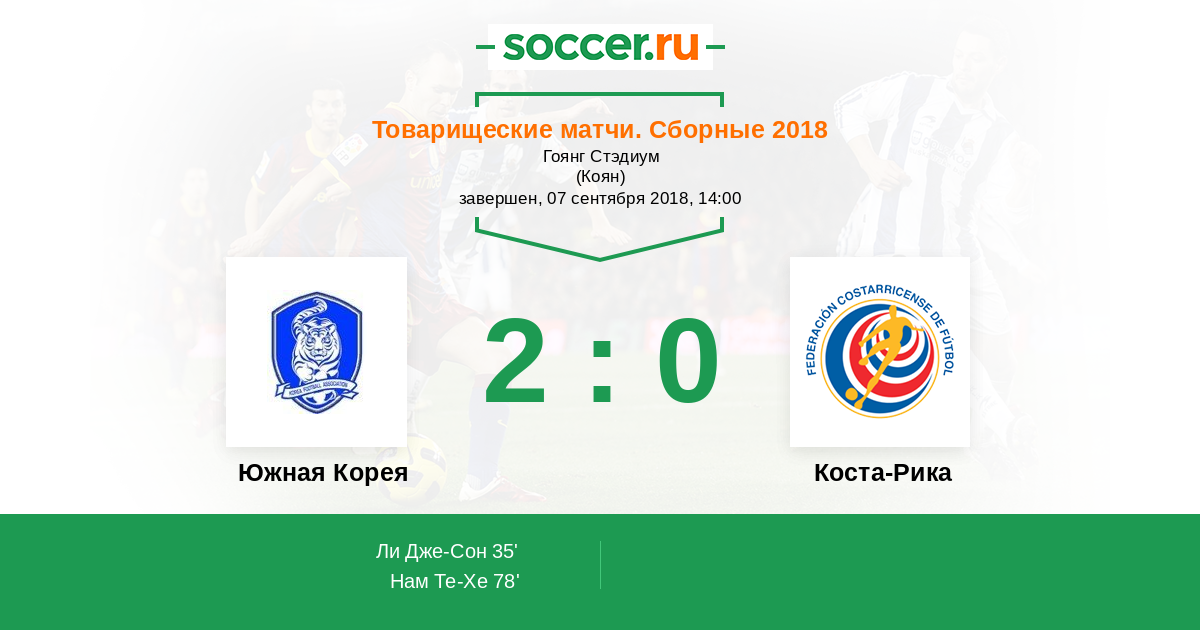 Протокол матча Южная Корея против Коста-Рика