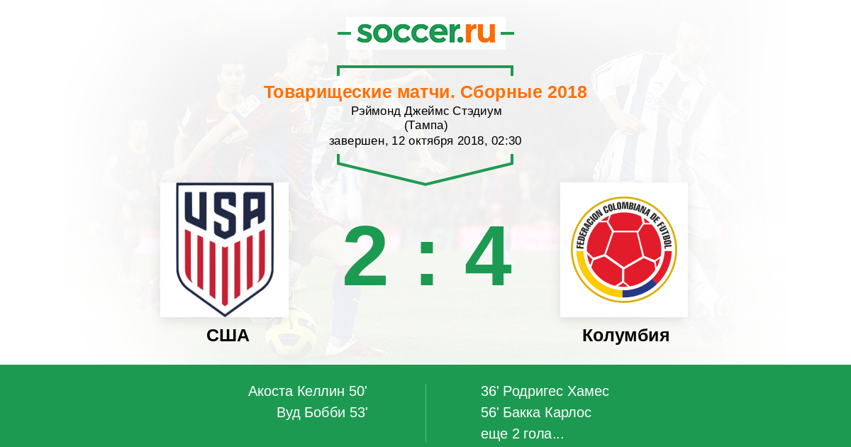 36' (0:1) Родригес Хамес (10) (Ариас Сантьяго (4))