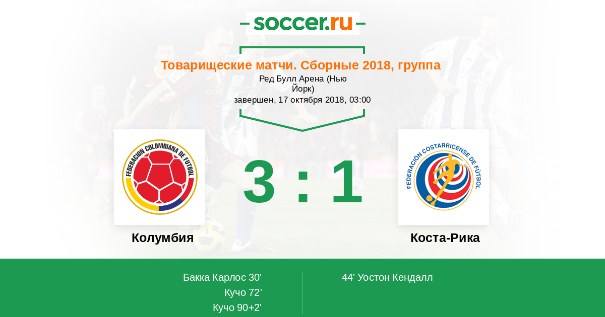 30' (1:0) Бакка Карлос (7) (Родригес Хамес (10))