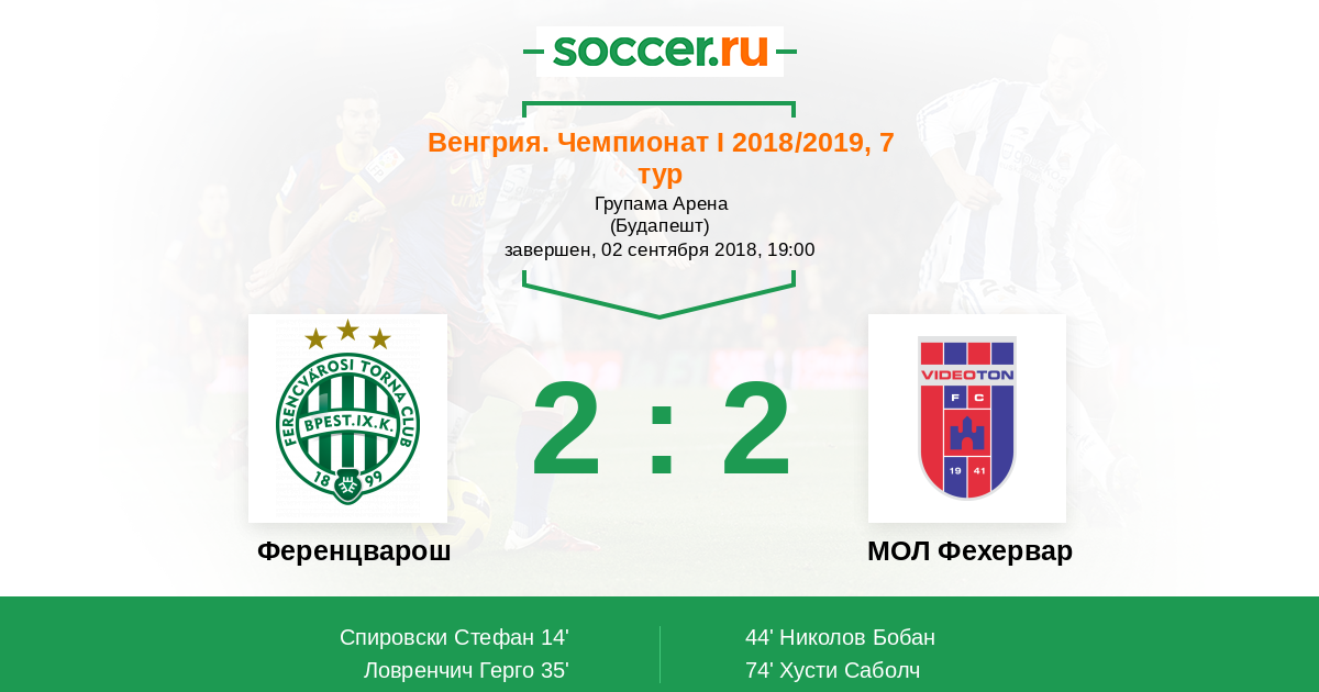 Протокол матча Ференцварош против МОЛ Види