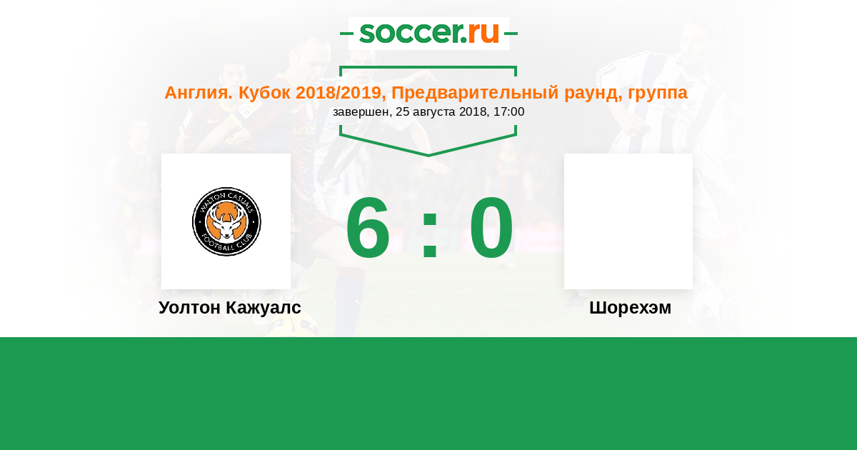 Англия. Истмийский дивизион 19.09.2020 Уолтон Кажуалс Логотип футбольный клуб Уолтон Кажуалс (Уолтон-на-Темзе) 1:1 Логотип футбольный клуб Хартли Уинтни Хартли Уинтни