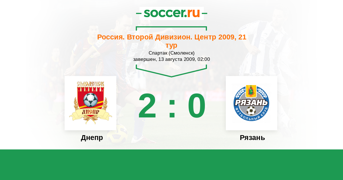 Россия. Вторая лига. Группа 3 14.05.2009 Звезда Рз Логотип футбольный клуб Звезда Рз (Рязань) 1:0 Логотип футбольный клуб Днепр (Смоленск) Днепр