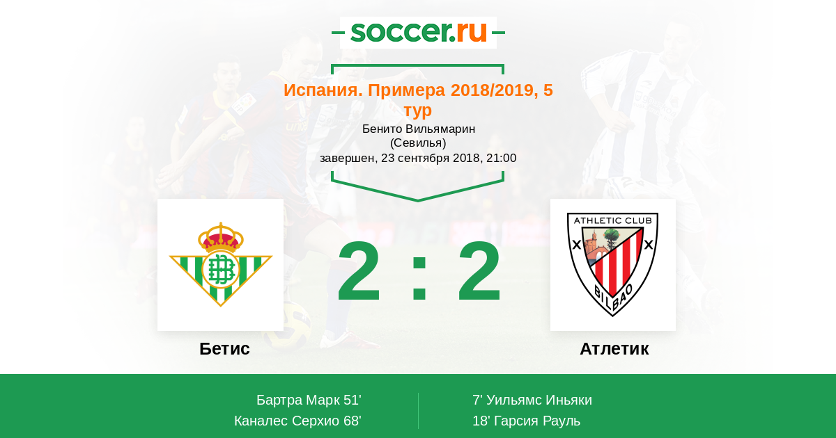 Протокол матча Бетис против Атлетик