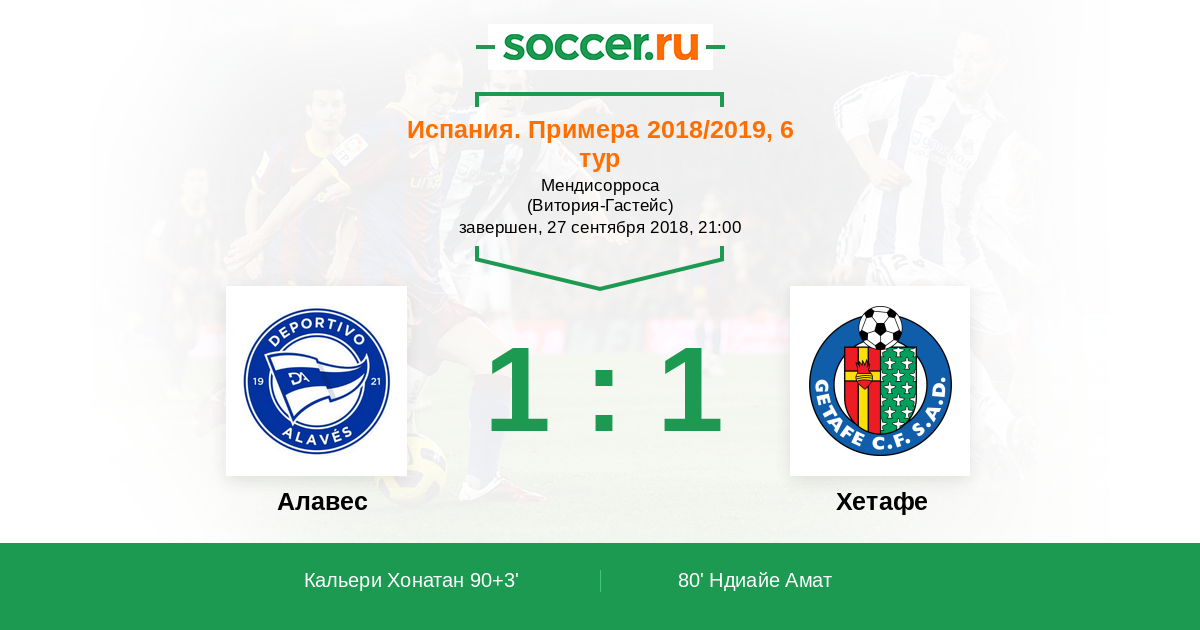 Протокол матча Алавес против Хетафе