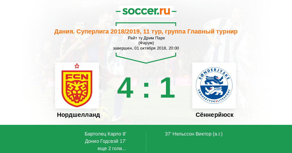 Протокол матча Нордшелланд против Сённерйюск