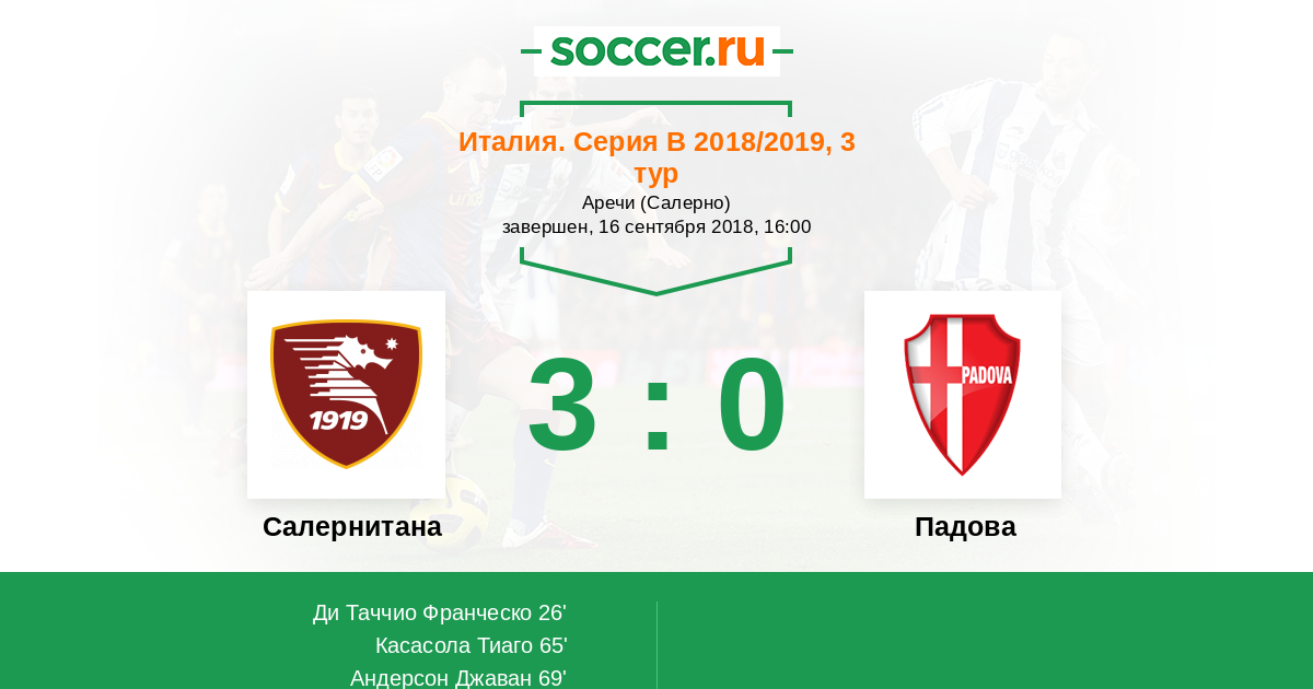 Протокол матча Салернитана против Падова